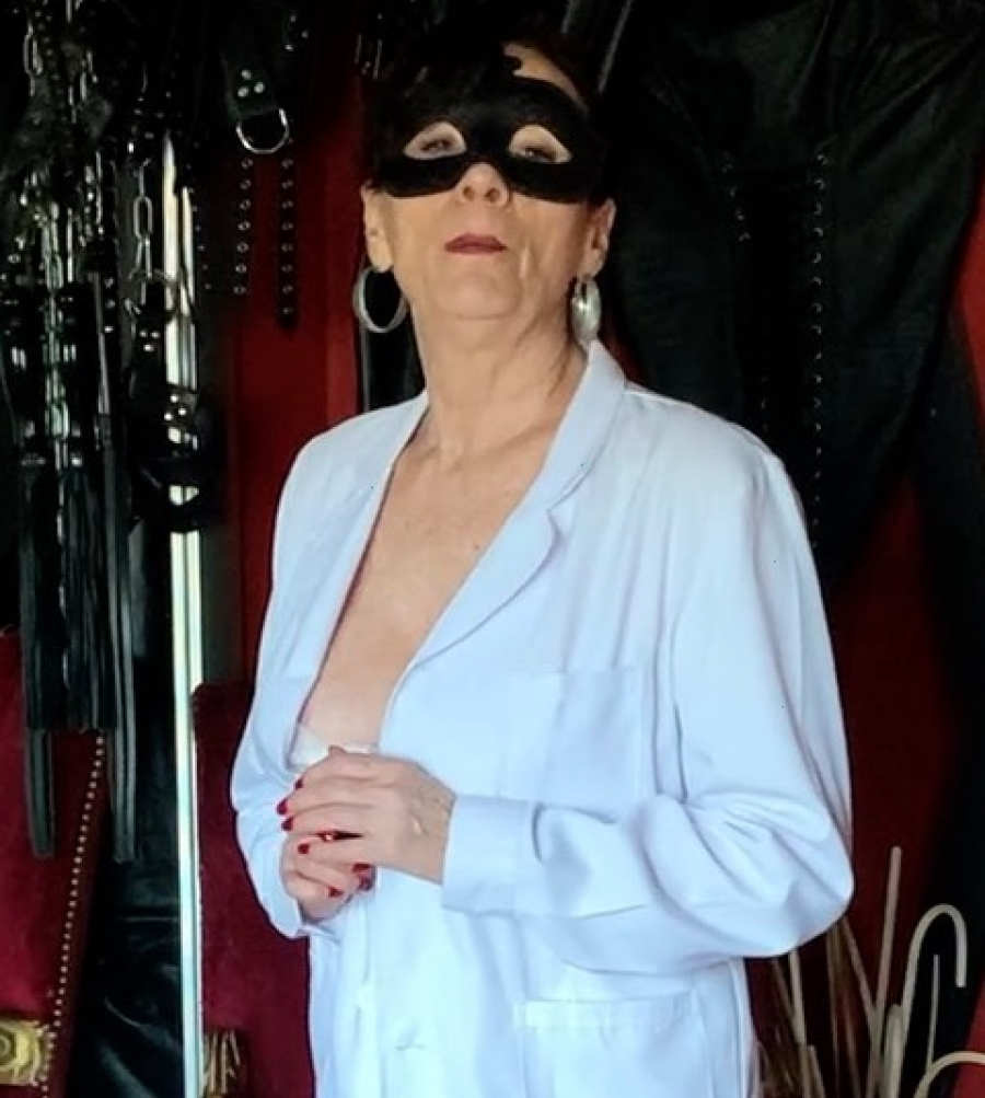 Frau Doktor kündigt eine Prostatauntersuchung an. Der Patient klagt über Erektionsprobleme, und das muss natürlich vorab geklärt werden. So erscheint die Frau Doktor aber erst einmal in ihrem weißen Kittel mit Strümpfen und Strapsen darunter, um den Patienten zu reizen, und zu sehen, wo das Problem liegt. Bei diesem Anblick und nachdem die Frau Doktor erklärt hat, dass der **** auch regelmäßig gerieben werden muss, hat der Patient plötzlich keine Probleme mehr. Ganz im Gegenteil. Eine kleine Betäubung mit dem Wässerchen hilft dann sicherlich auch noch dabei. So aufgegeilt und angeleitet, wichst der Patient sich also vor der Frau Doktor ab. Dabei muss er immer wieder am Fläschchen riechen und sich von ihr anspucken lassen. Aber ganz ehrlich, das ganze macht ihn ziemlich geil!